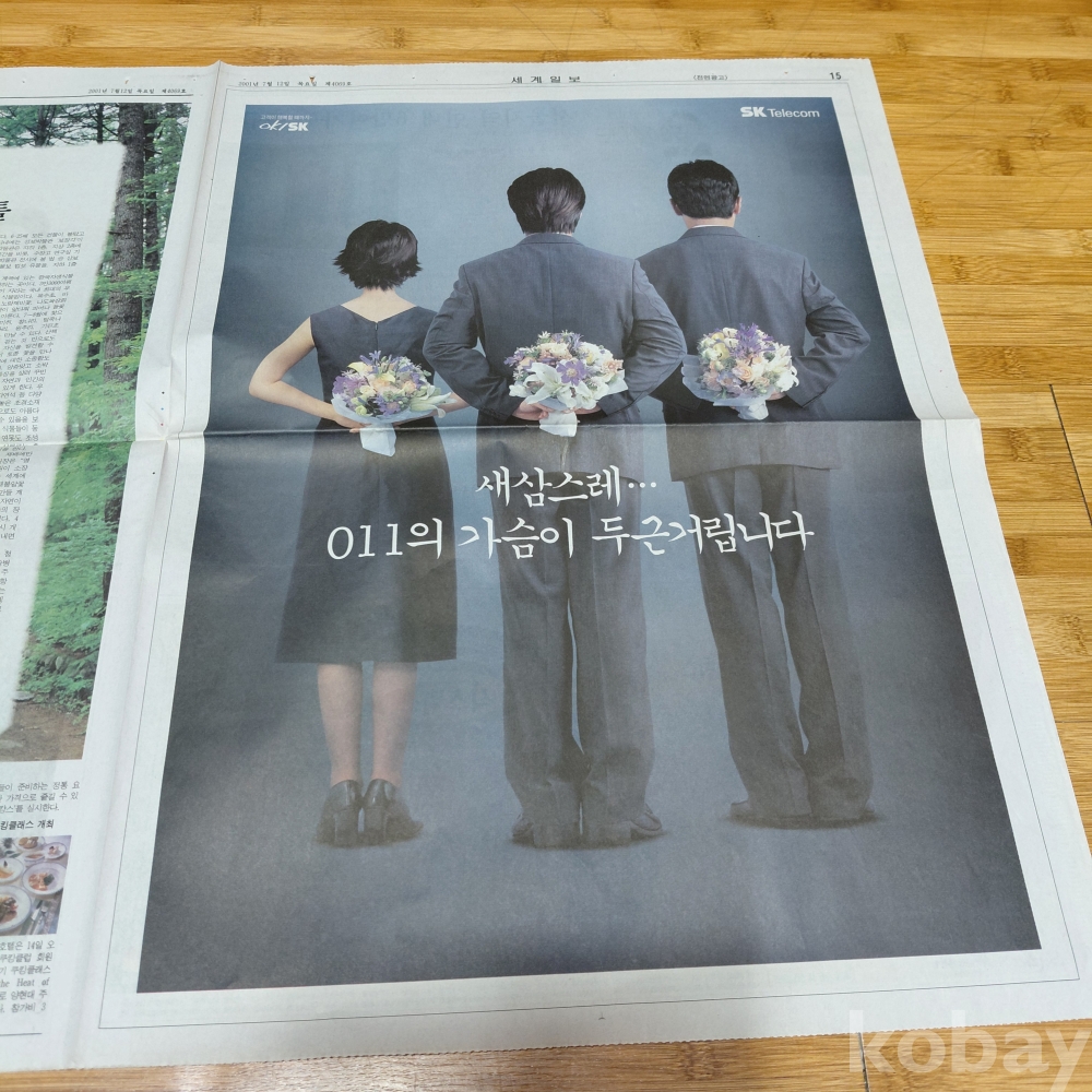 SK텔레콤 011 광고 세계일보 2001년 7월12일 올려드립니다