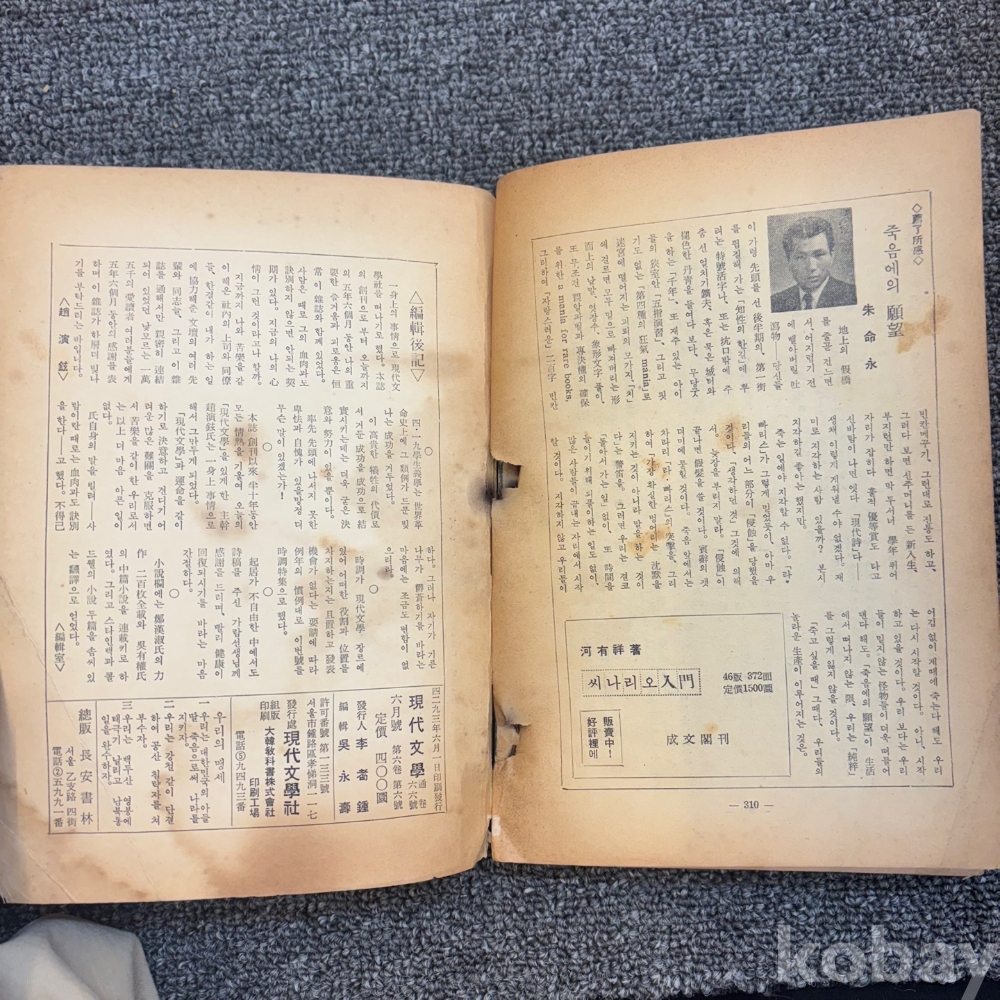 [한국현대사, 제3공화국] <현대문학 1969년 6월호 (제6권 제6호) >, 현대문학사, p. 310, 상태 중하급(사진참조)