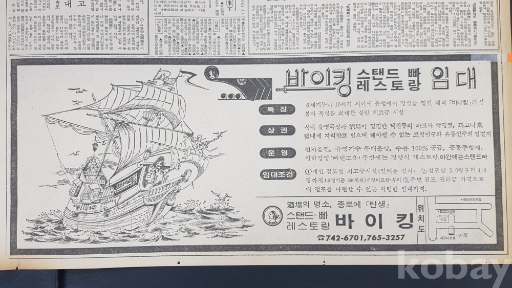 **** 1982.11.10(동아일보)/스탠드-빠 레스토랑 바이킹 임대 광고 등/12면