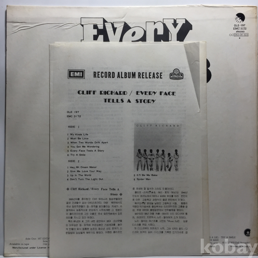 LP 350-44 Cliff Richard - Every Face Tells a Story 자켓 EX+ 알판 EX 78 년 국내반