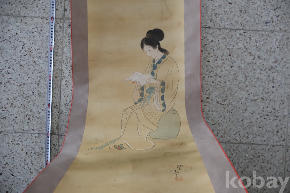 멋진 독서 하는 미인 비단 족자 이며 세월의 흔적이 보이는 우아함과 멋을 가진 명화 임니다 사진 참조 하세요