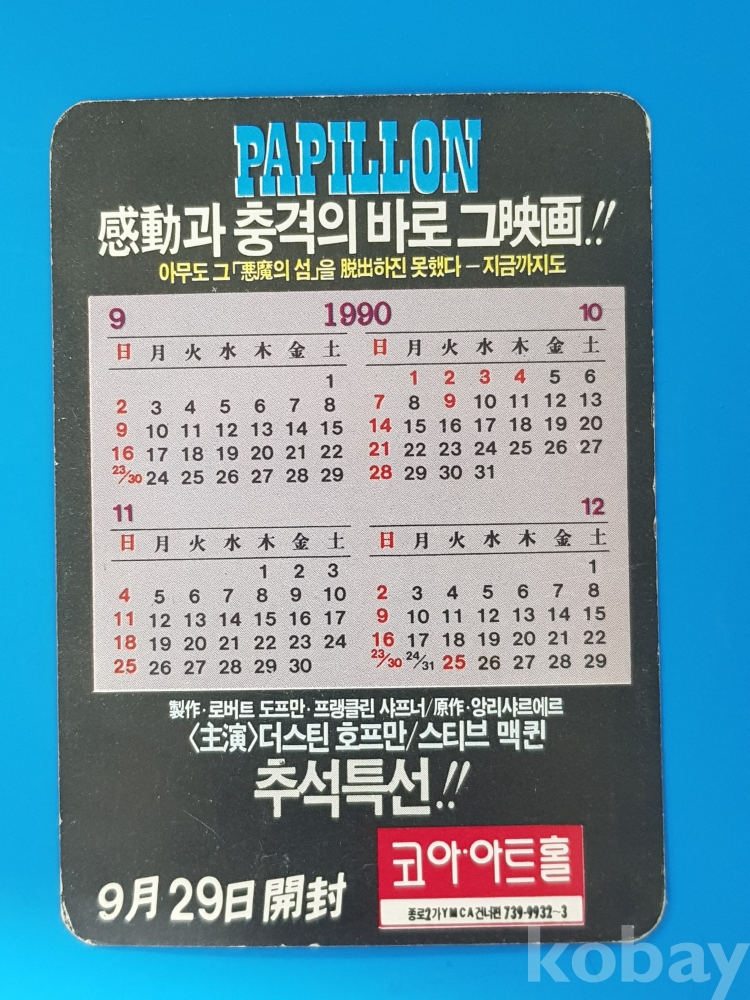 [w26] 영화카드*빠삐용/스티브 매퀸, 더스틴 호프먼 주연/1990년 코아아트홀