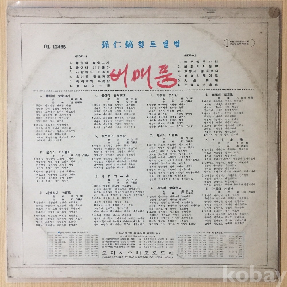 ⊙ 1968년 / 오아시스레코드 - OL 12465