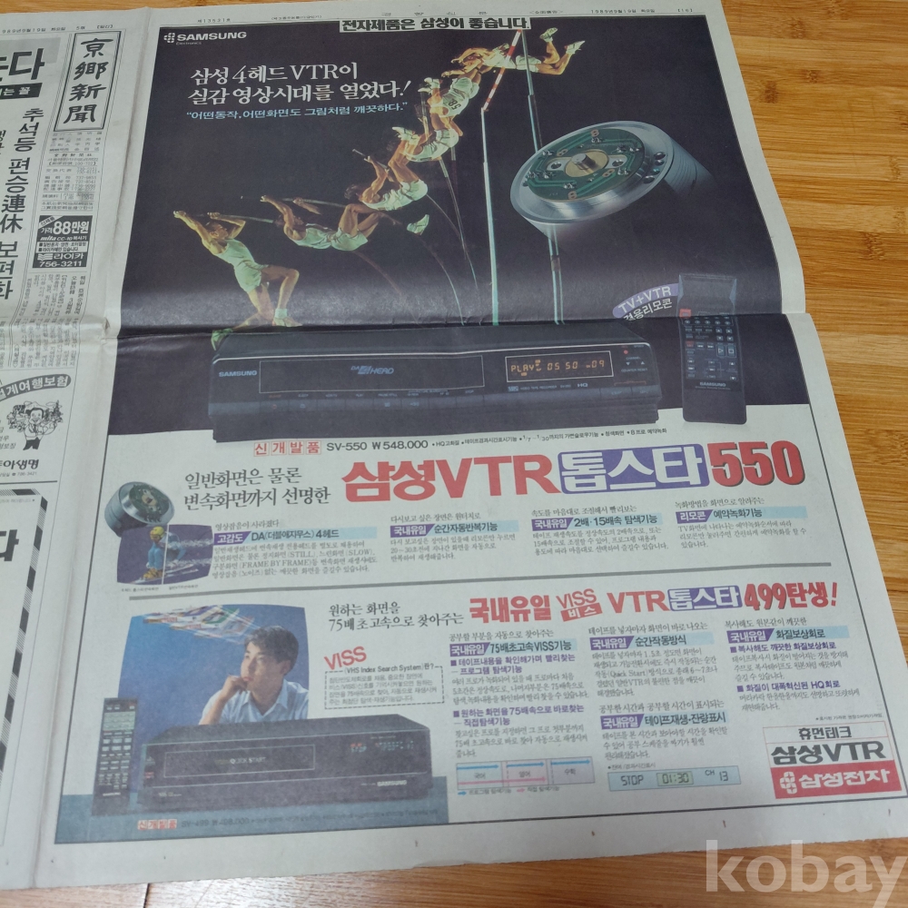 삼성전자 삼성 VTR톱스타550 광고 경향신문 89년9월19일 올려드립니다
