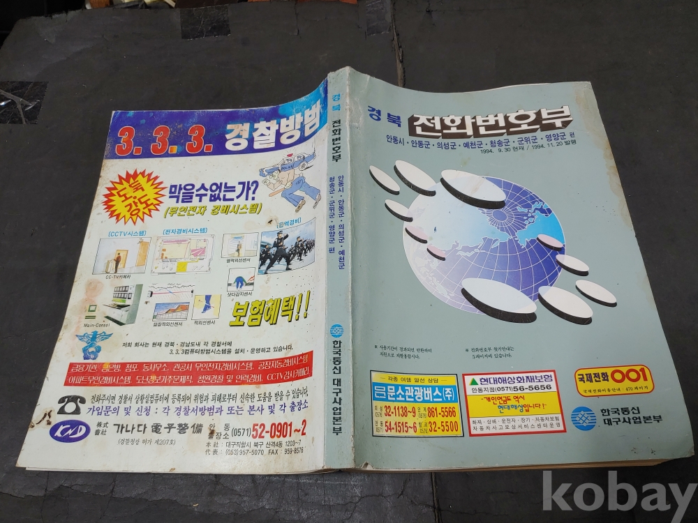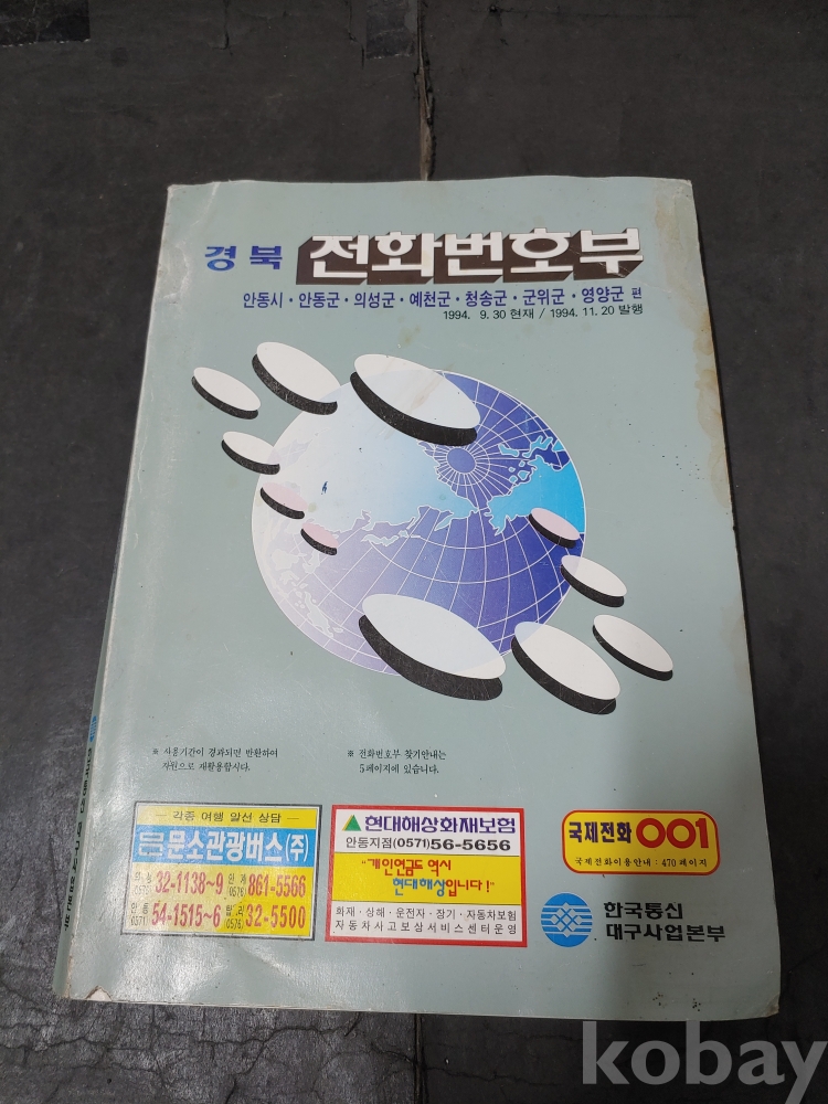 경북 전화번호부 ...안동시 안동군, 의성군, 예천군, 청송군, 군위군, 영양군 편 1994년 11.20발행 ..표지의 오른쪽 왼쪽 윗부분에 얼룩이 조금 있음