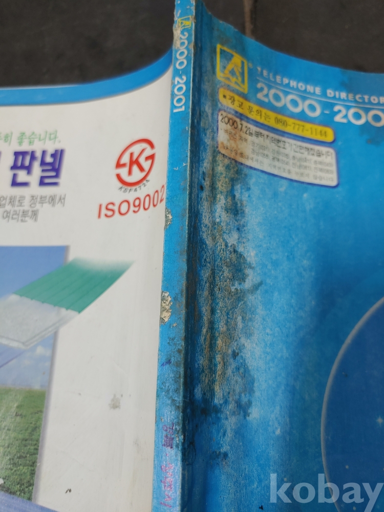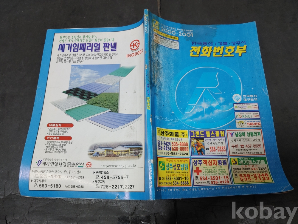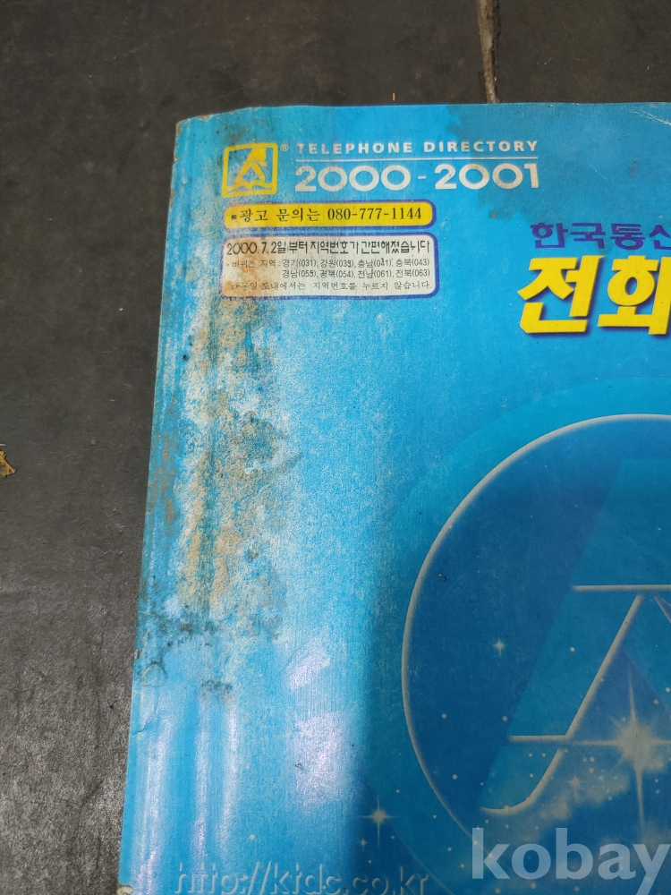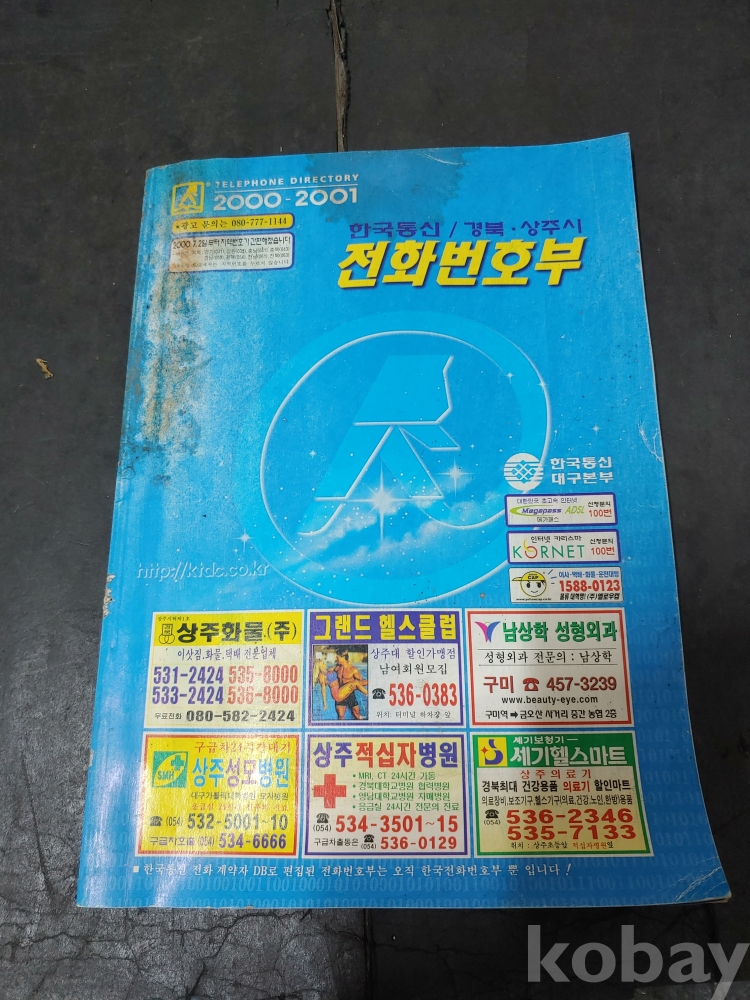 한국통신 경북 상주시 전화번호부...2000-2001년...표지의 왼쪽 윗부분에 얼룩이 있음