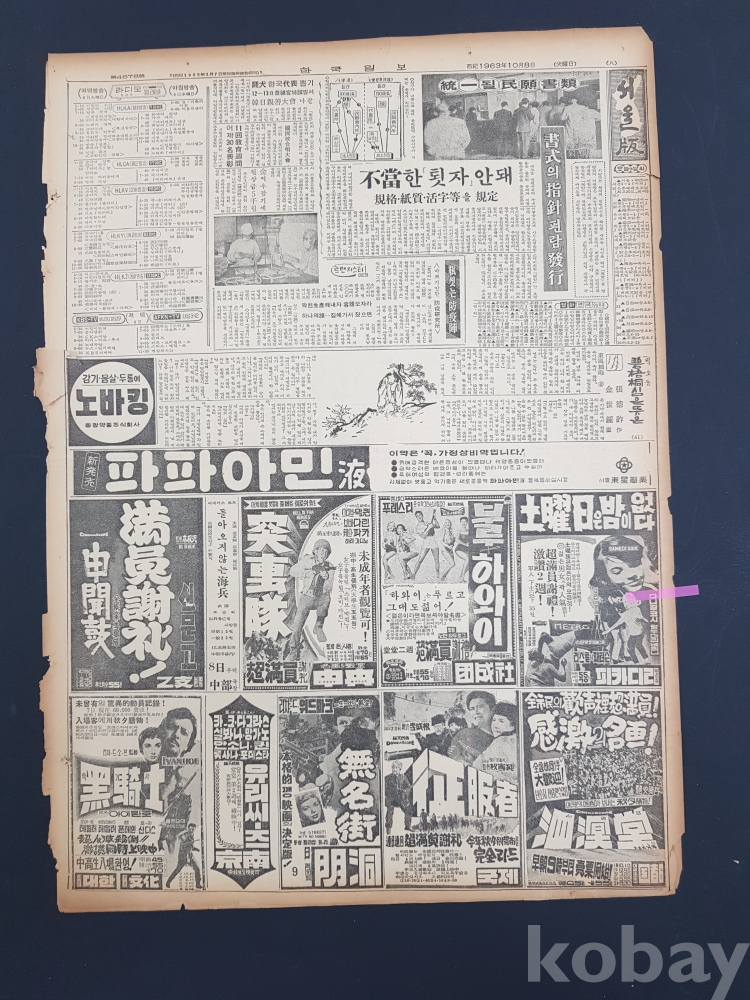 **** 1963.10.08(한국일보)/극장영화상영 광고포함/약 4면