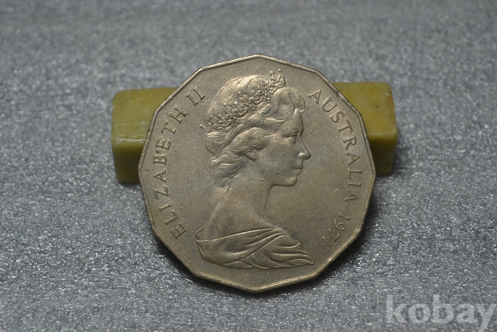 " A급 극미품~ 흔치않은 종류(귀한 대형 50센트)~ 귀한종류(32 mm 대형지름)(도안문양 좋은 극미품~) ".. " 오래된~ 1971년도 호주 50센트 백동화~ 오스트레일리아(호주) 1971년도 발행~ 50센트 대형지름 백동화 " / 도안문양 좋은 보존상태