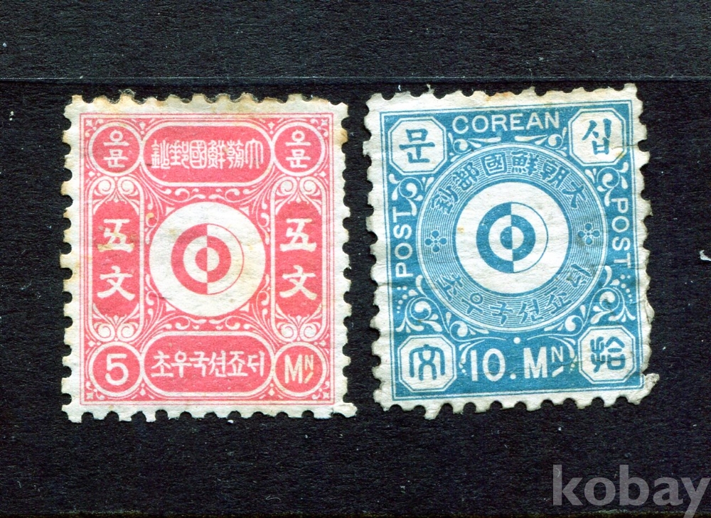 - [구한말] 1884년대 미사용 문위보통 5문 & 10문 (Hinged) : 이미지 참조하세요