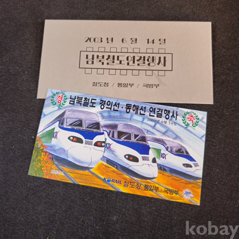 (((철도자료))) 2003년 남북철도 경의선 .동해안 연결행사기념 봉투와 티켓 (KORAIL/철도청/통일부/국방부)