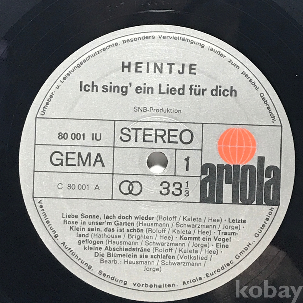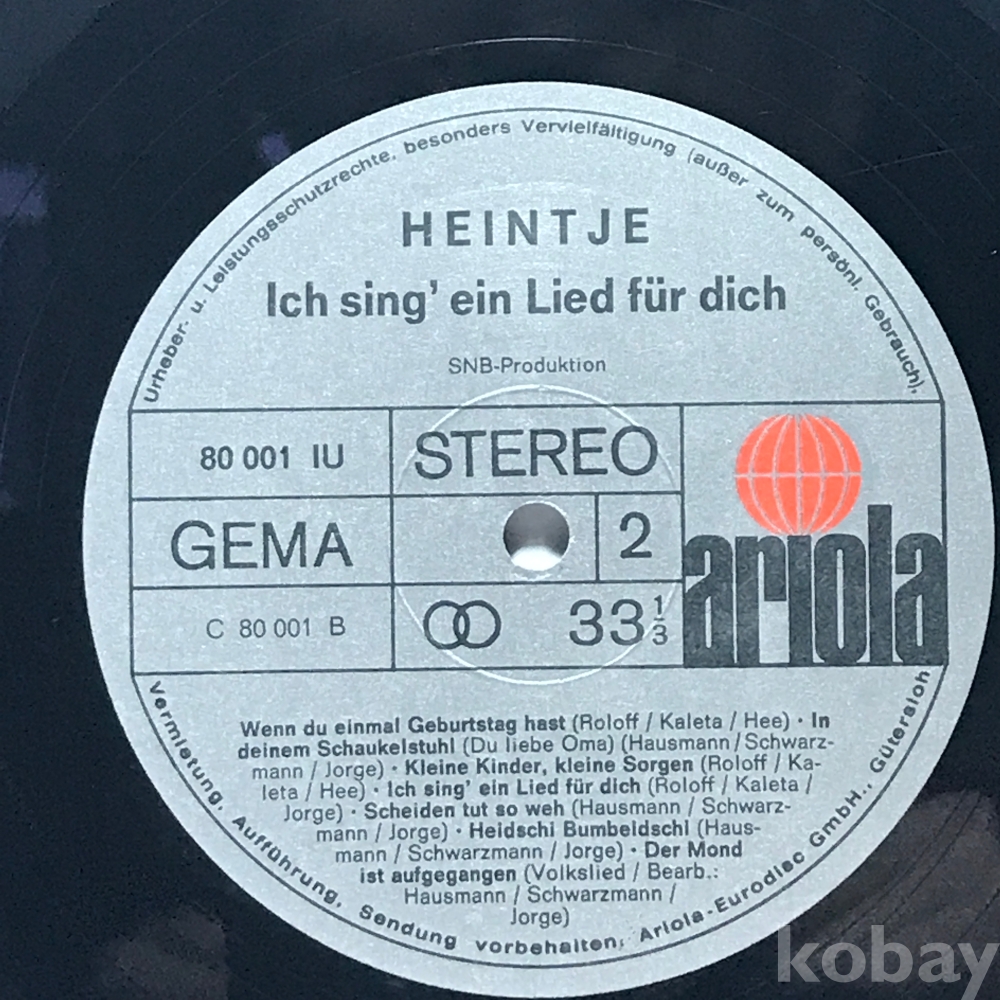 LP 83,623-168 HEINTJE Ich sing' ein Lied für dich . 자켓 無 알판 VG+ 수입반