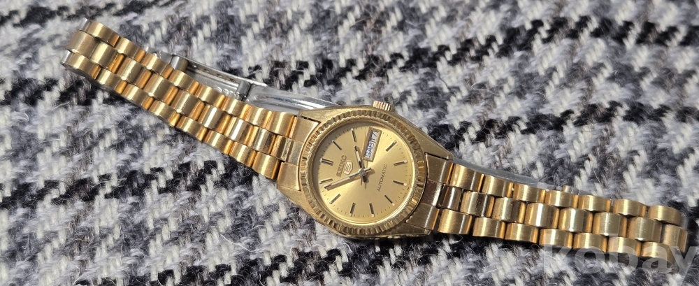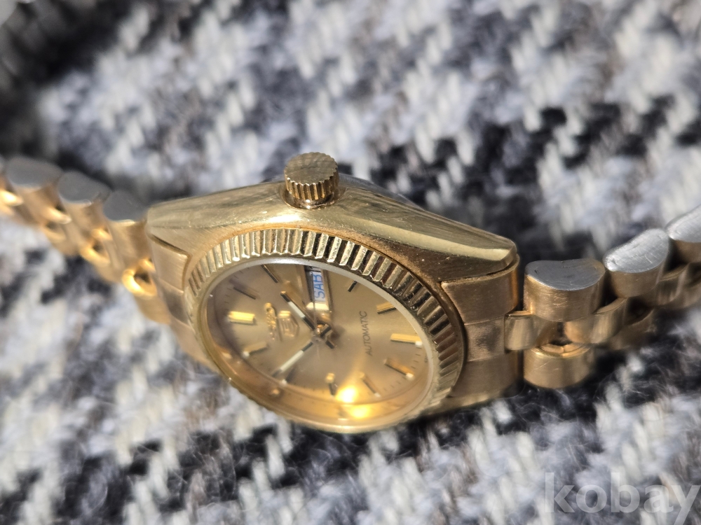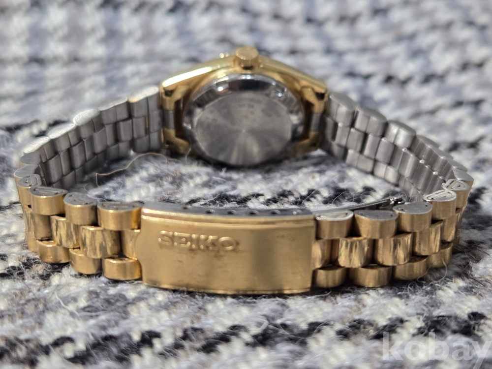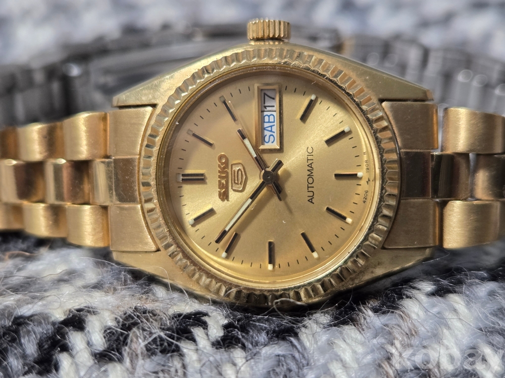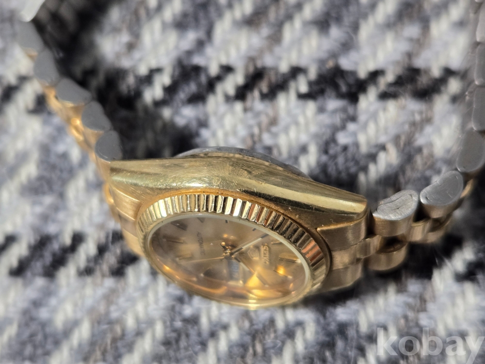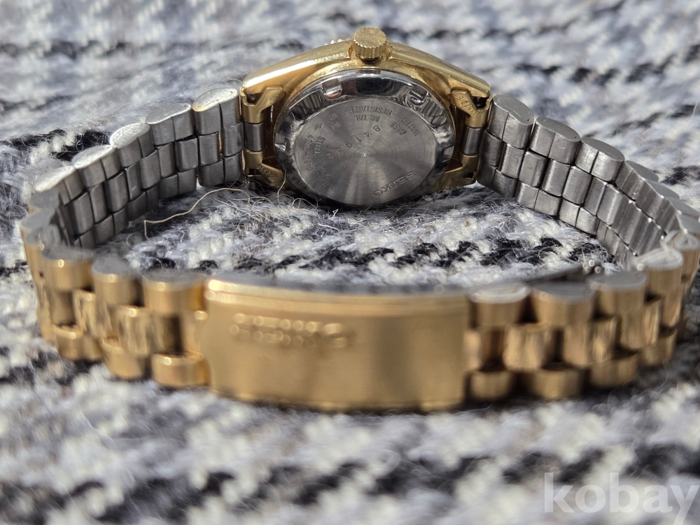80년대 세이코의 금장 여성용 오토매틱 시계입니다. 로렉스 금통을 연상케하는 럭셜한 디자인으로 모델넘버는 ref. 4206-0510.