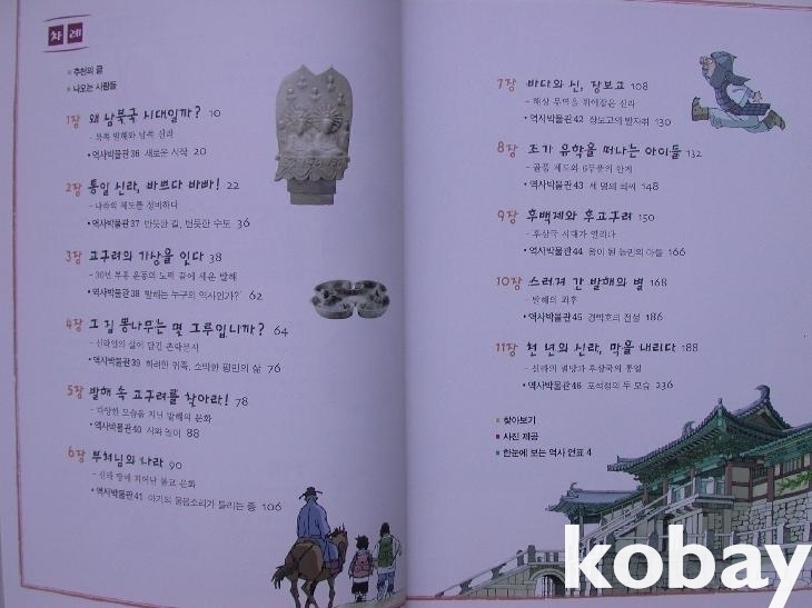 앞에 '청소년권장도서' 표시가 있다. 앞에 나오는 사람들 소개가 있고 본문은 11장으로 구성하였으며 만화가 끝난 각 장 끝마다 '역사박물관'이란 박스 설명이 36~46번의 일련번호에 따라 들어가 있다. 맨 뒤에 역사 연표가 절첩되어 있다.