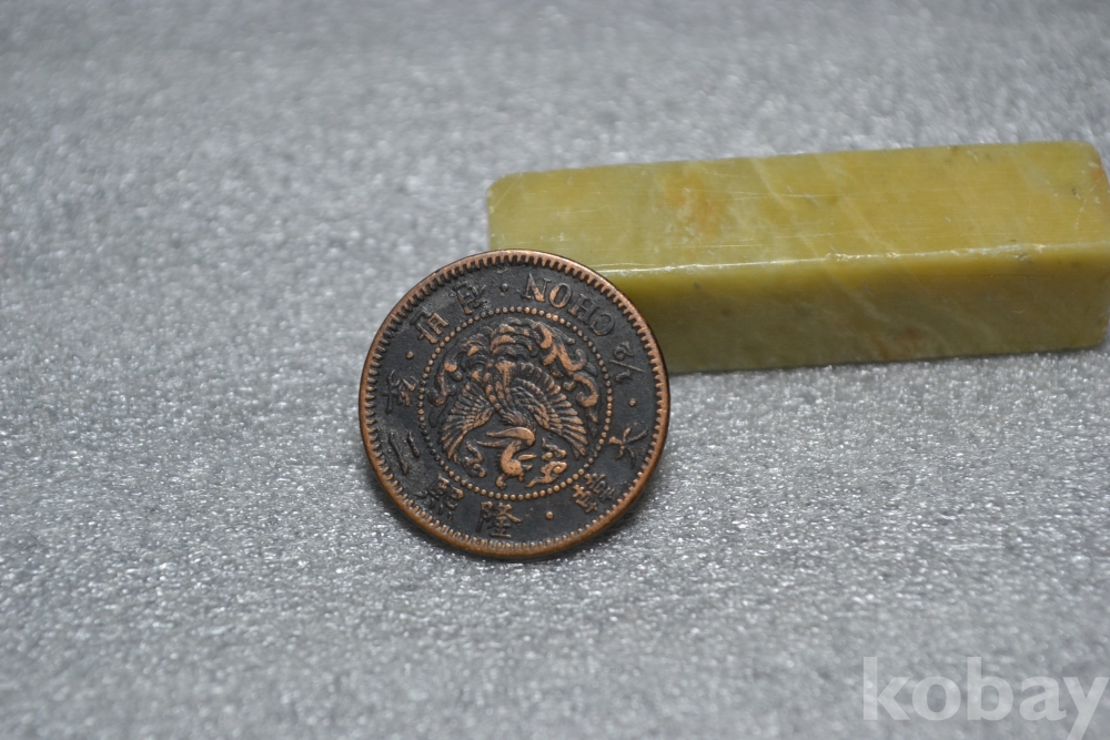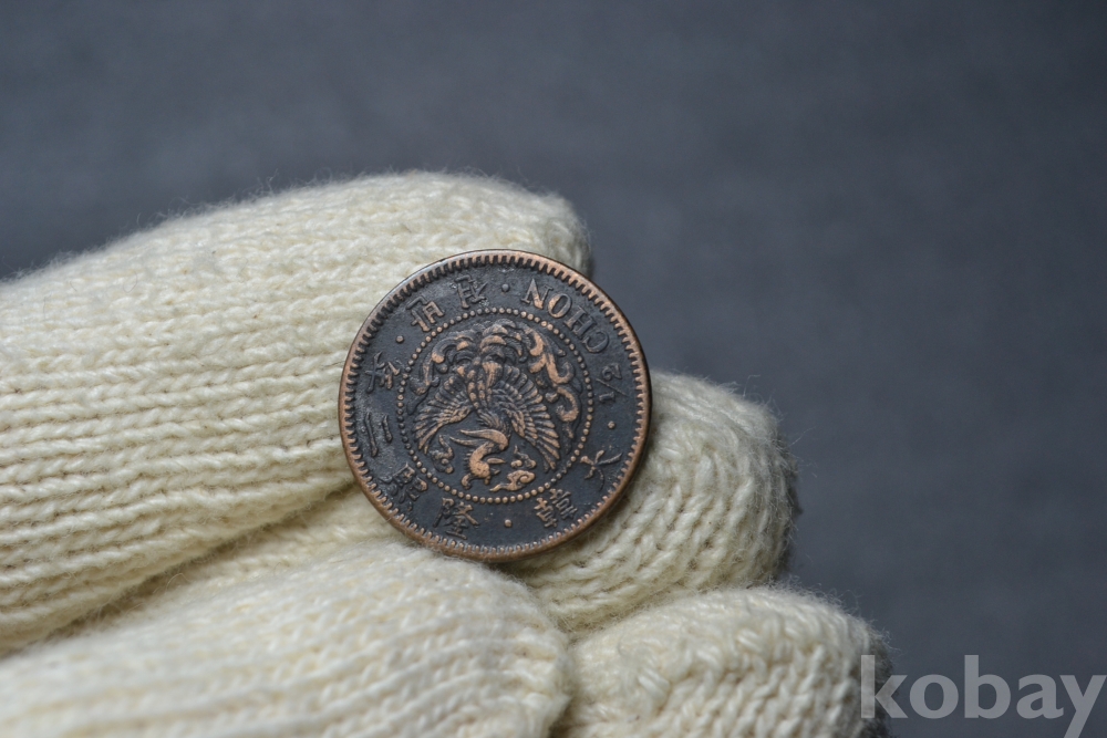ㅡ> 조선말기 고종황제시절의 대한제국시대인 1908년도인 융희2년도에 발행된 매우 희소한 종류의 반전(소형) 봉황 청동화 입니다.