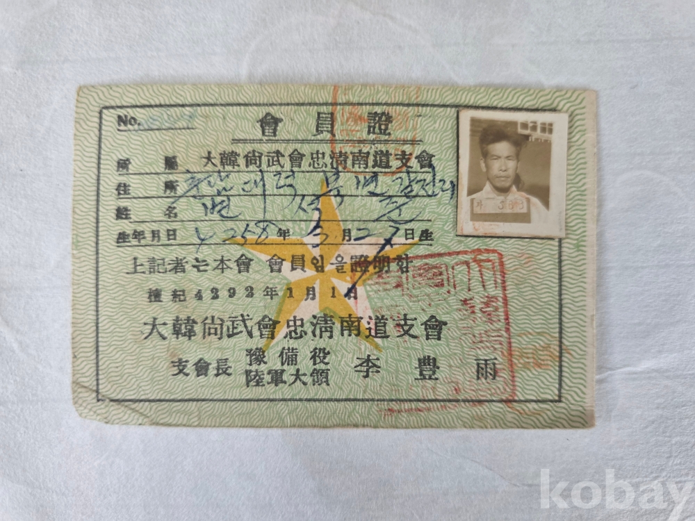 1959년 대한상무회 충청남도 도지회 회원증 입니다