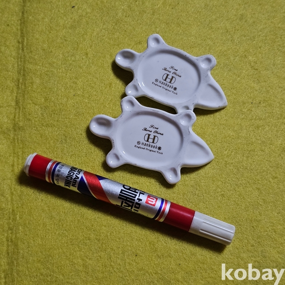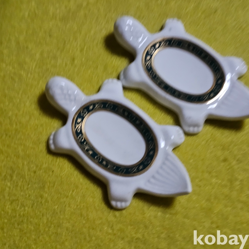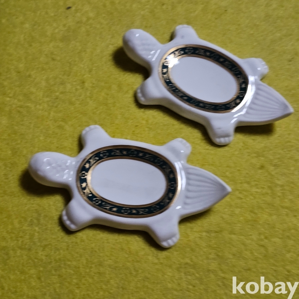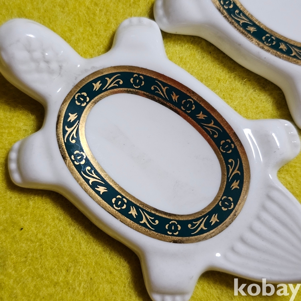 (((근현대사자료))) 오래전 거북이모습 도자기 수저받침 2개 (한국도자기)