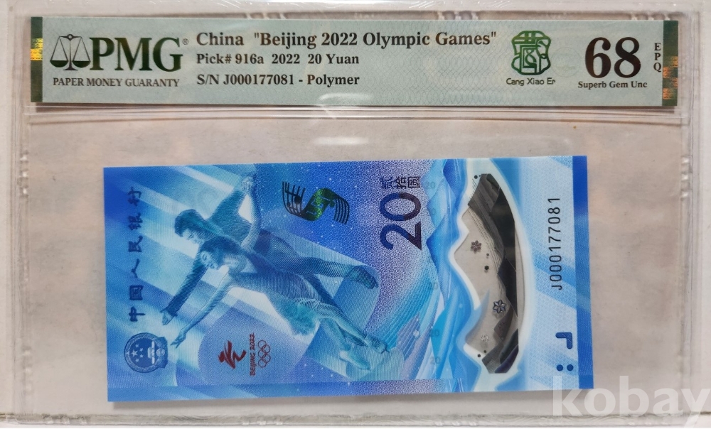 -2022년 중국 동계올림픽 기념 지폐 PMG68 고등급 입니다.