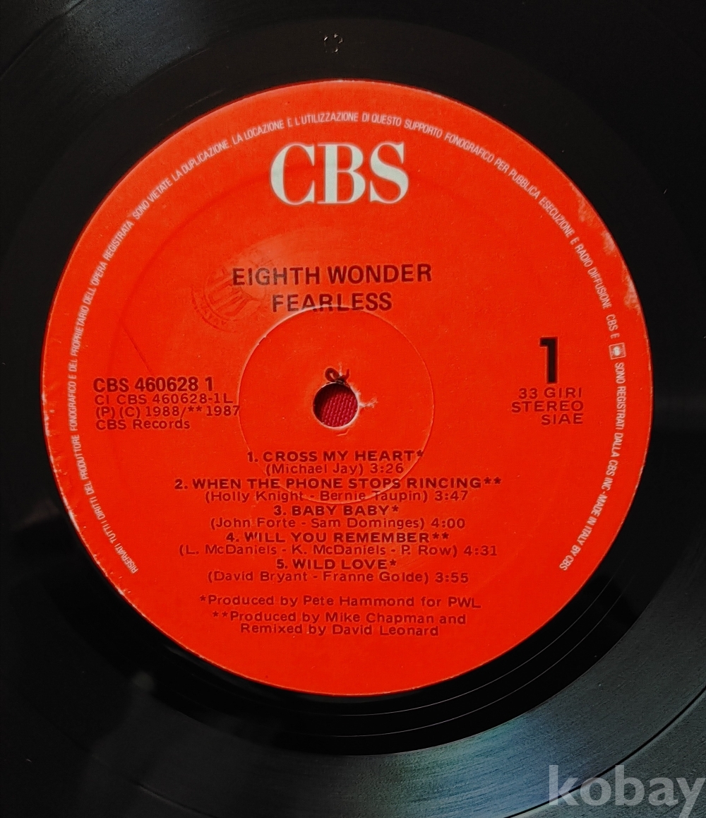 팝 락 / 뉴 웨이브 / Eighth Wonder 앨범입니다 / 트랙은 별도로 제공합니다 / Nm/ 이탈리아