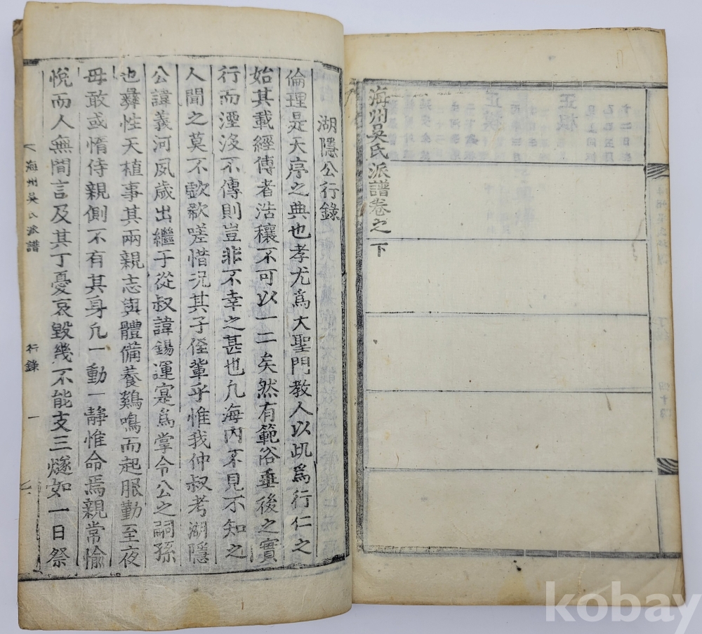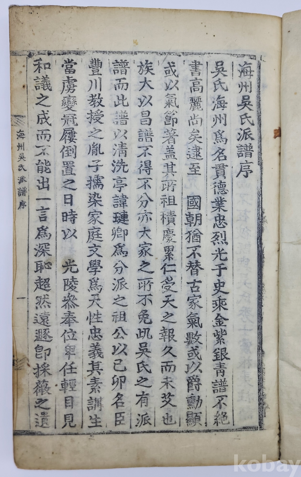 이 책은 황해도 해주를 본관으로 하고, 오인유(吳仁裕)를 시조로 하는 성씨의 세계이다.