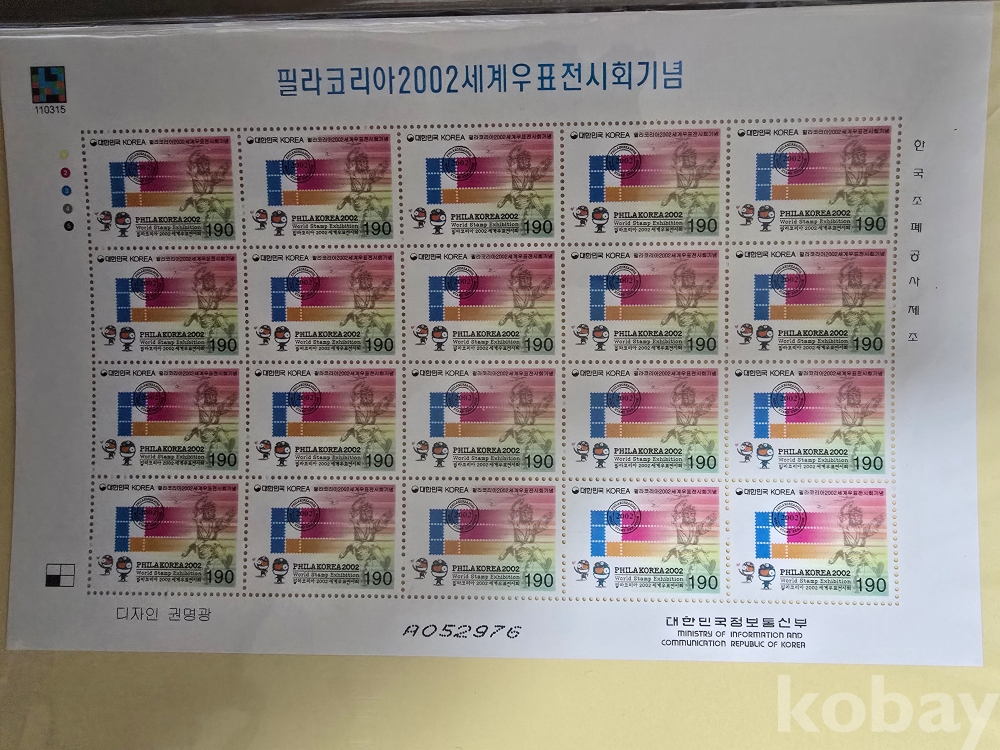 미사용 전지우표/02.8.2필라코리아 세계우표전시회 기념
