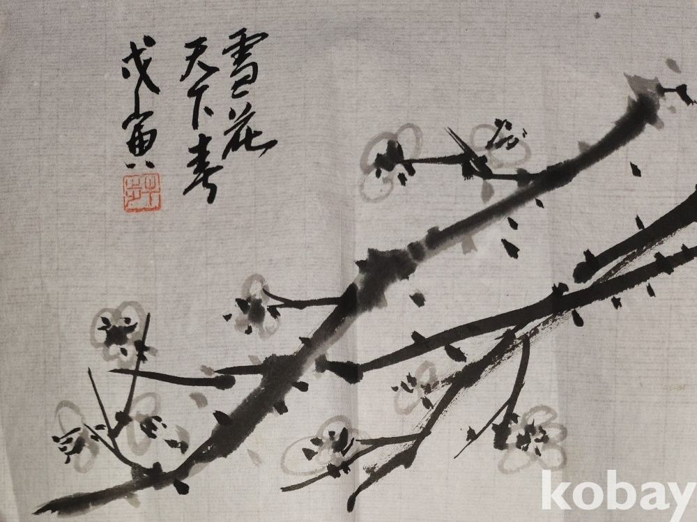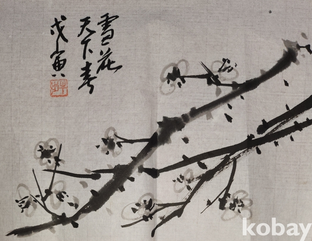 종이에 수묵화 매화 그림입니다,