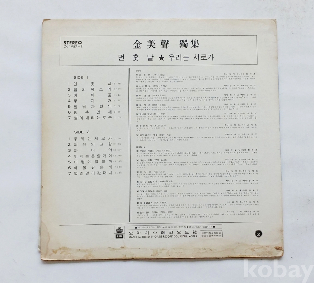 | 자켓상태 | EX : 약간의 마모, 모서리 찢김 존재 | 음반상태 | EX : 재생에 영향 없는 가벼운 기스 존재 | 발매정보 | 알수없음 | 가사지여부 | 무 |