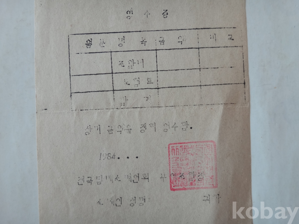 전국 담배소매인회 부여조합 - 조합비 영수증 (1984년)