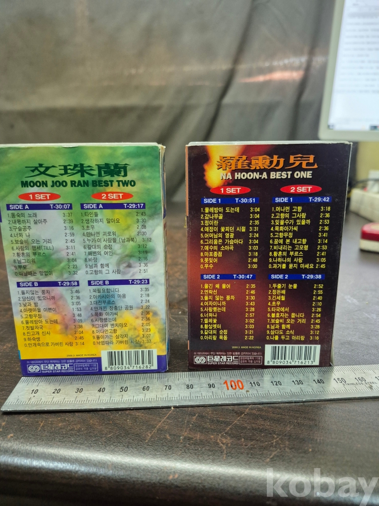 1990년대 나훈아 베스트 원 카세트테이프 문주란 베스트 2 카세트 테이프 2세트 일괄 7*3.5*11