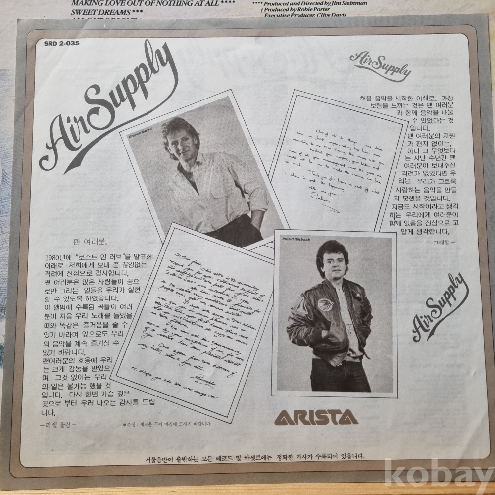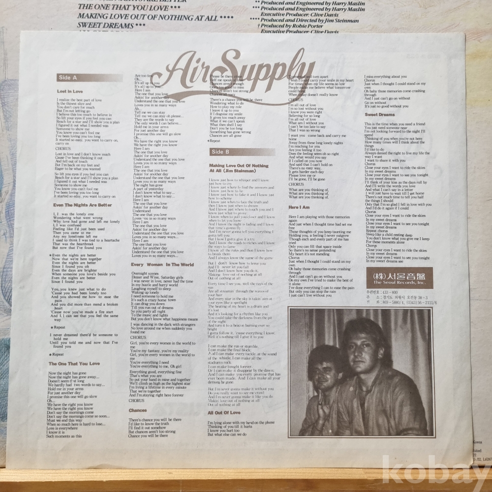 AIR SUPPLY GREATEST HITS 1983년 초반 서울음반