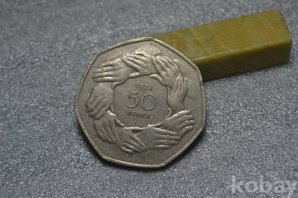 ㅡ> 50펜스 주화의 뒷면을 보시면 일반적인 " 군인과 사자도안 " 이 아니고, 맞잡은 손들이 그려진 도안으로 어떤 공동체사회 기념주화 형태로 발행되어진 50펜스로 보입니다. (사진참조)