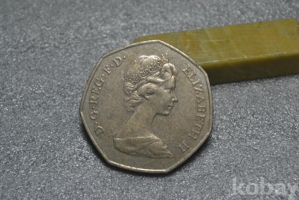 ㅡ> 오래된~ 1973년도~ 영국 50펜스(대형) 7각형 백동화 작품 입니다. (사진참조)