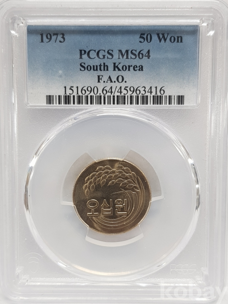 - 준특년도 1973년 50원 / 50주 PCGS MS 64 그레이딩 인증 주화