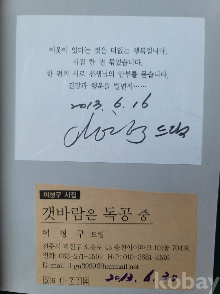 이형구(전북특별자치도 순창: 1956) 저자서명 시집.