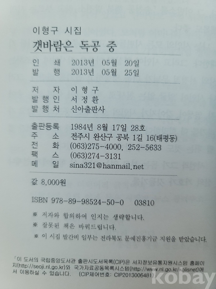 2013년 발간한 제2시집 『갯바람은 독공 중』