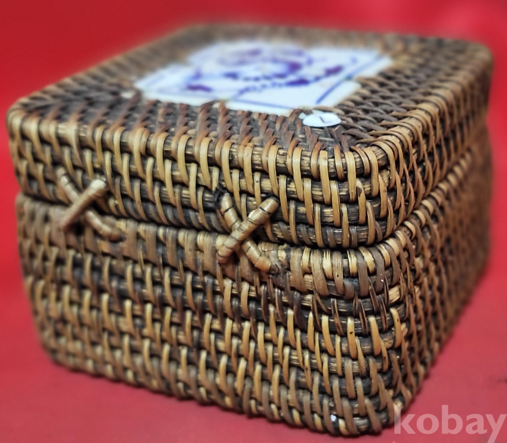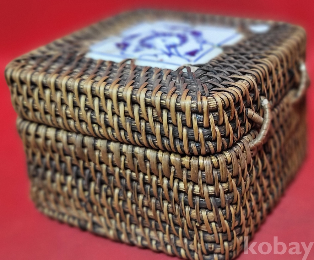 천연 소재와 도자기 청화 꽃문양 귀중품을 담는 상자입니다,