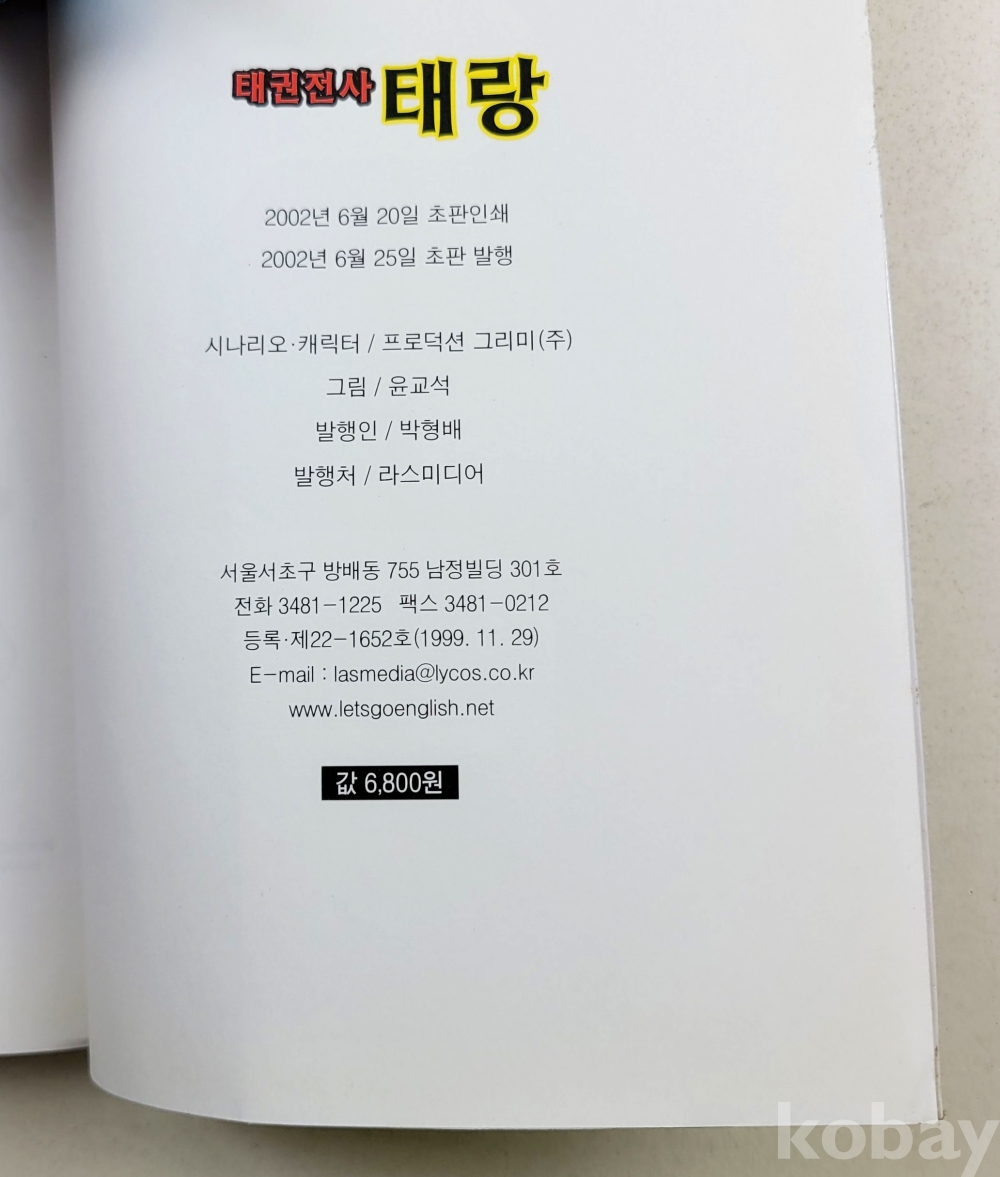 물 품 명 | 윤교석 / 태권전사 태랑 (1) / 태권도를 소재로한 본격 SF액션만화 / 2002년 초판 / 라스미디어 |