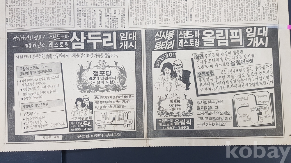 **** 1983.01.08(한국일보)/스텐드-바 레스토랑 올림픽 임대개시 광고 등/4면