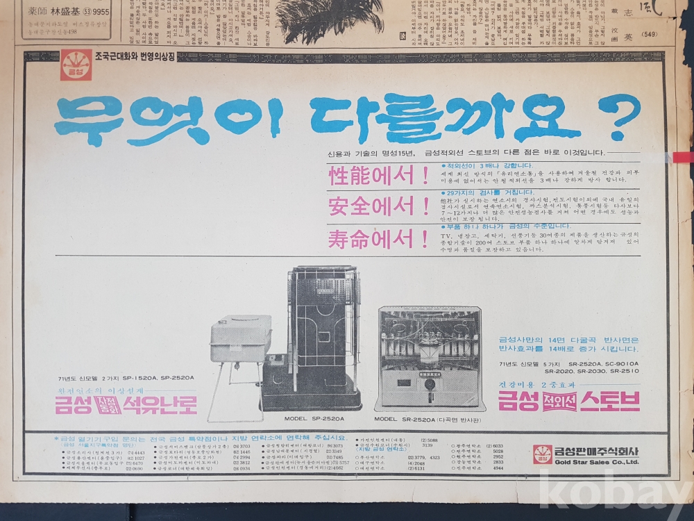 **** 1971.12.05(조선일보)/금성판매주식회사 금성석유난로,금성스토브 광고 등/4면
