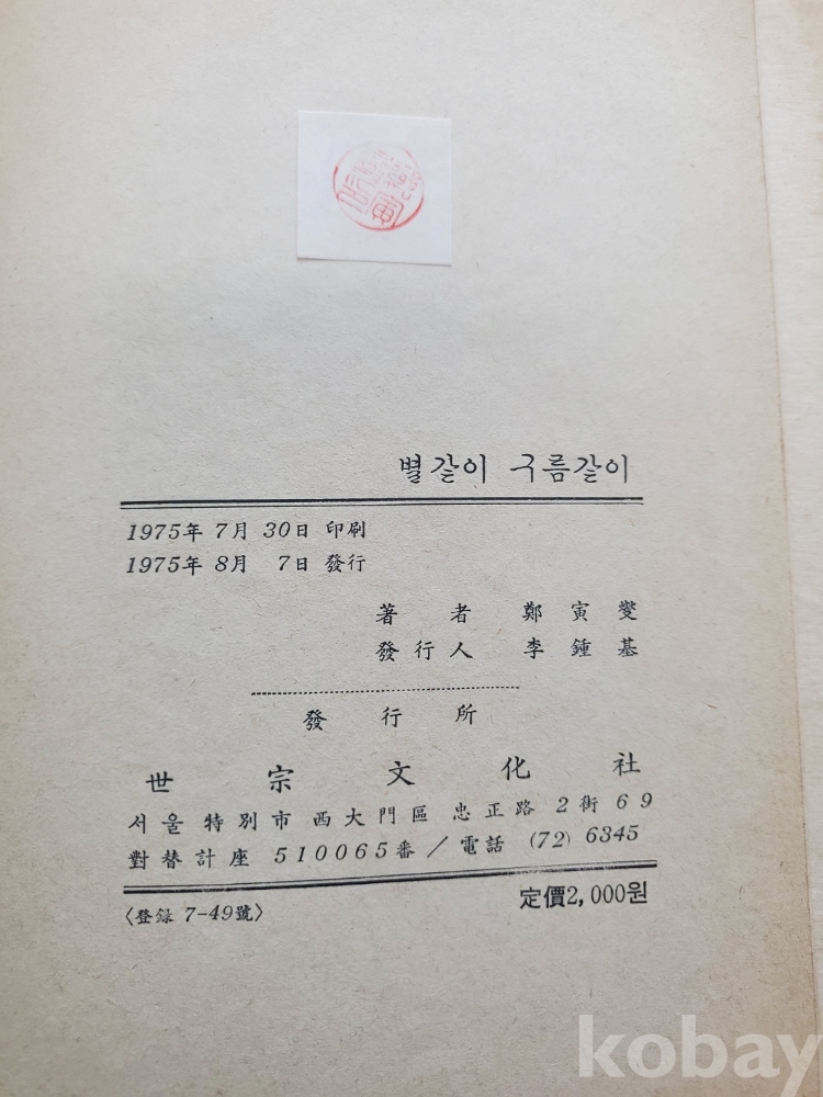 1. 별같이 구름같이, 정인섭, 세종문화사, 1975년, 241쪽, 상태 상, 사진 참조
