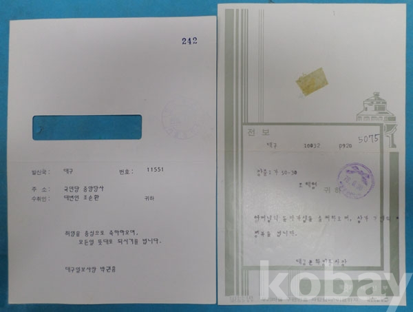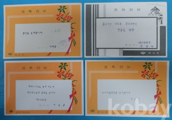 1970-80년대 대구 전보송달지 (경축전보,축하전보,조위전보) 17점