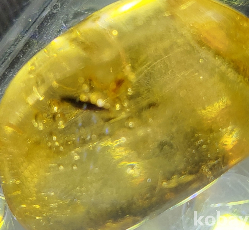 불빛이 투과되며 내부에 이물질이 들어있는 호박입니다,