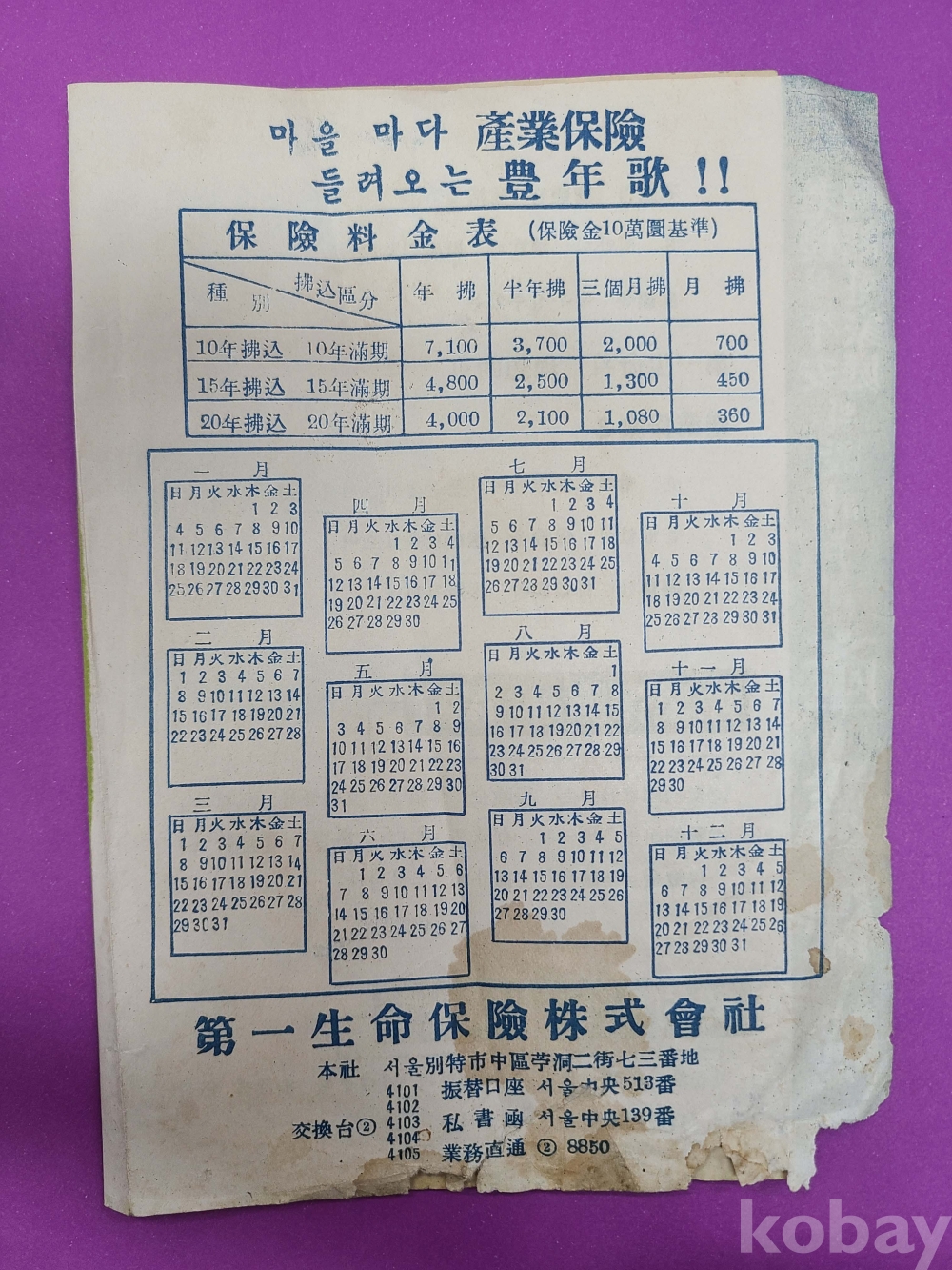 第一生命保險 팜플릿/“불행은 예고없다 보험들어 대비하자” 산업보험/하단부 헐었음
