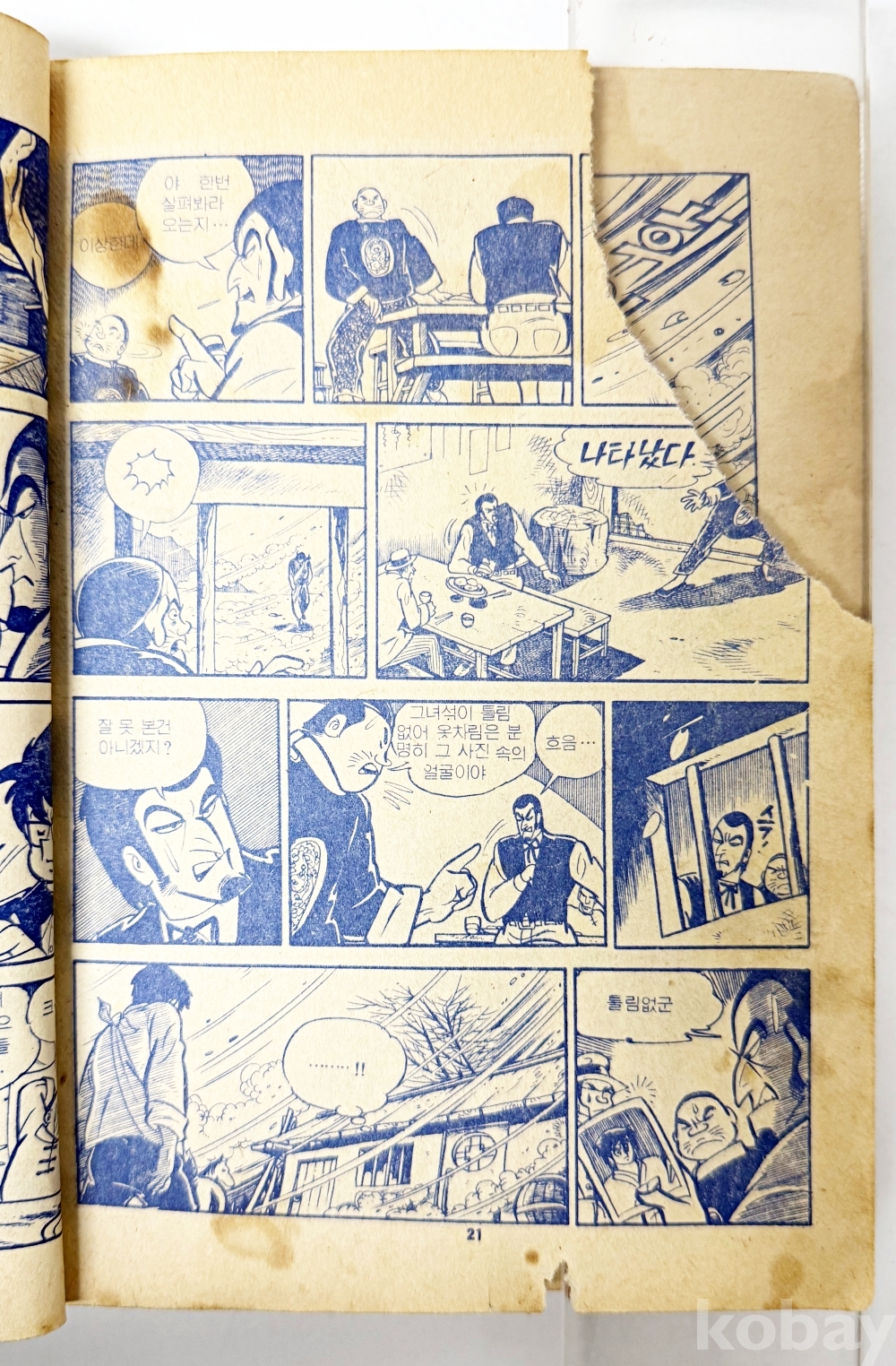 상품 설명 | 황재 작가의 단편 만화 '용호 출마' 이다. 첫페이지, 121p 찢어짐 / 33 ~ 34p, 71 ~74p, 177 ~ 178p 낙장 총 189p.
