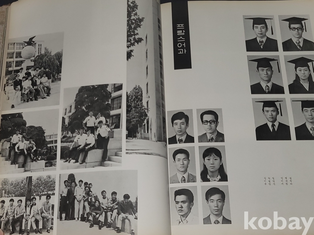 빈티지 세월 감이 느껴지는 희귀한 1974년 한국외국어대학교 제17회 졸업앨범입니다.