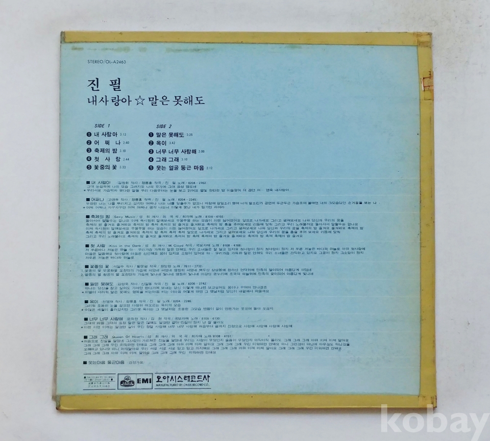 | 자켓상태 | EX : 약간의 마모, 모서리 찢김 존재 | 음반상태 | NM : 개봉했으나 미사용급, 스크래치 없음 | 발매정보 | 알수없음 | 가사지여부 | 무 |