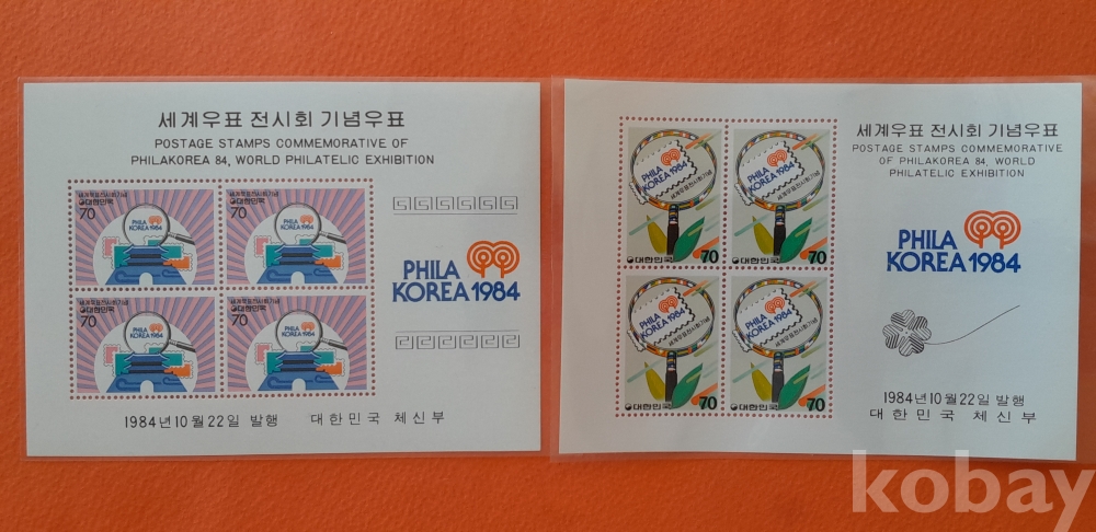 1984년 세계우표전시회 기념 소형시트 2종 입니다.