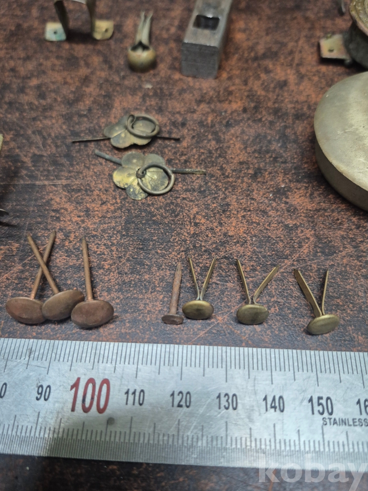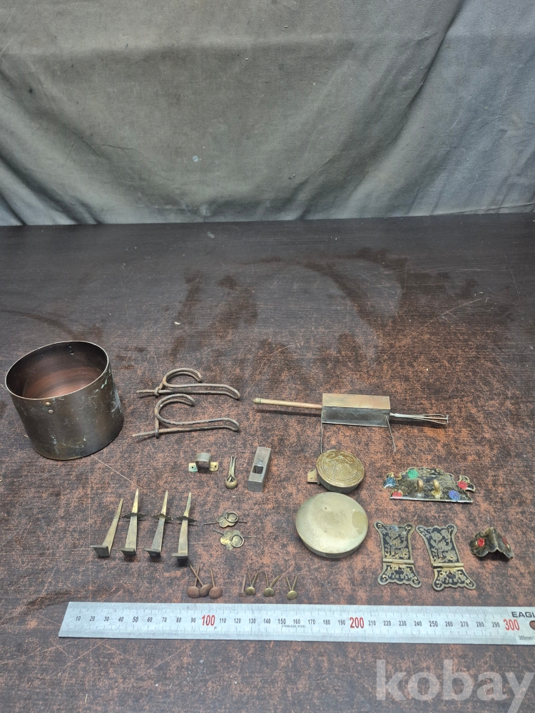 각종 동으로 제작되 경첩 등 여러가지 물품 장석 못 등 여러가지 9*9*7