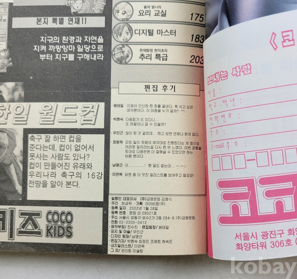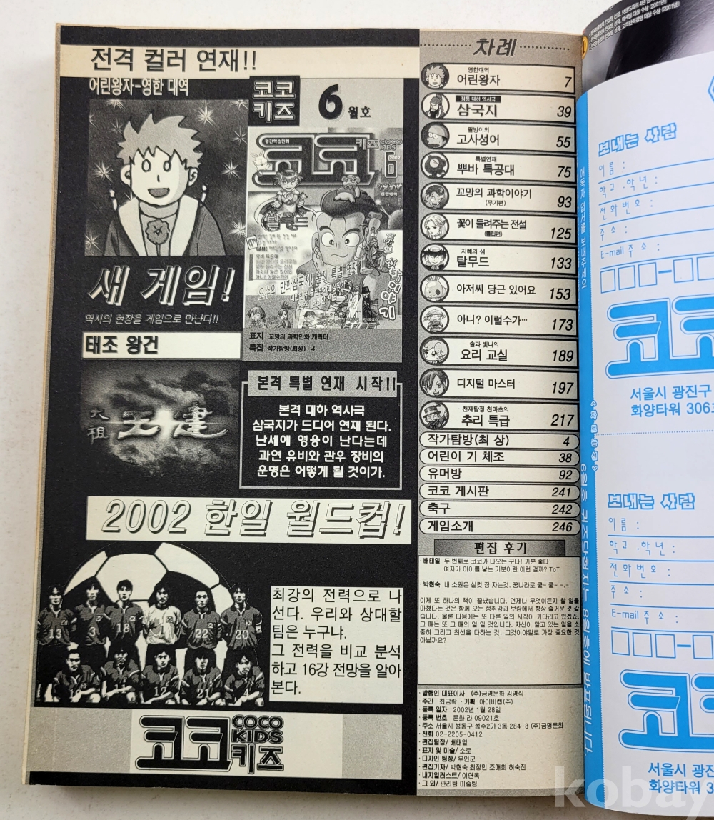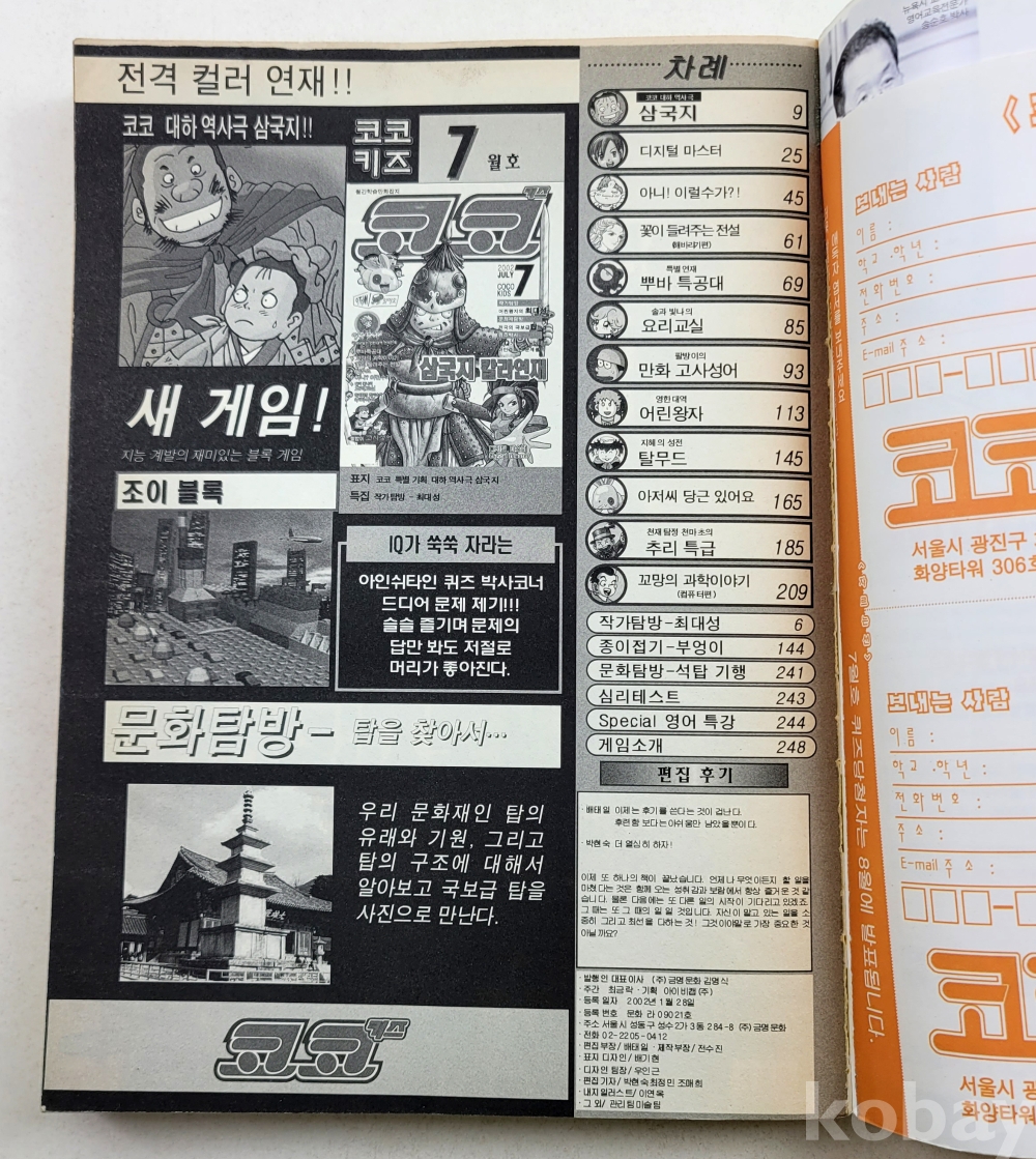 물 품 명 | 창간호 포함 / 코코키즈 5월호(창간호),6,7월호 총3권 / 월간학습만화 / 2002년 / (주)금명문화 |