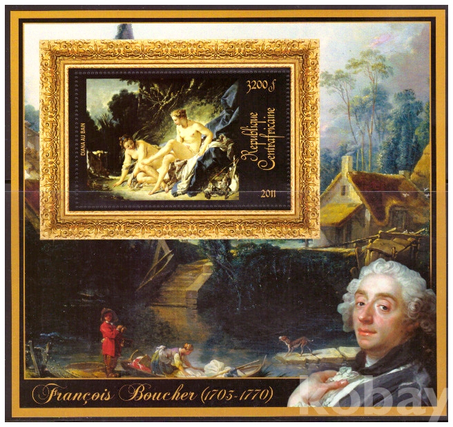 (누드명화) 중앙아프리카 2011 Francoise Boucher 목욕하는 다이아나 deluxe sheet MNH