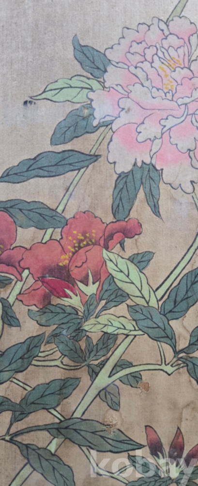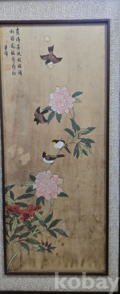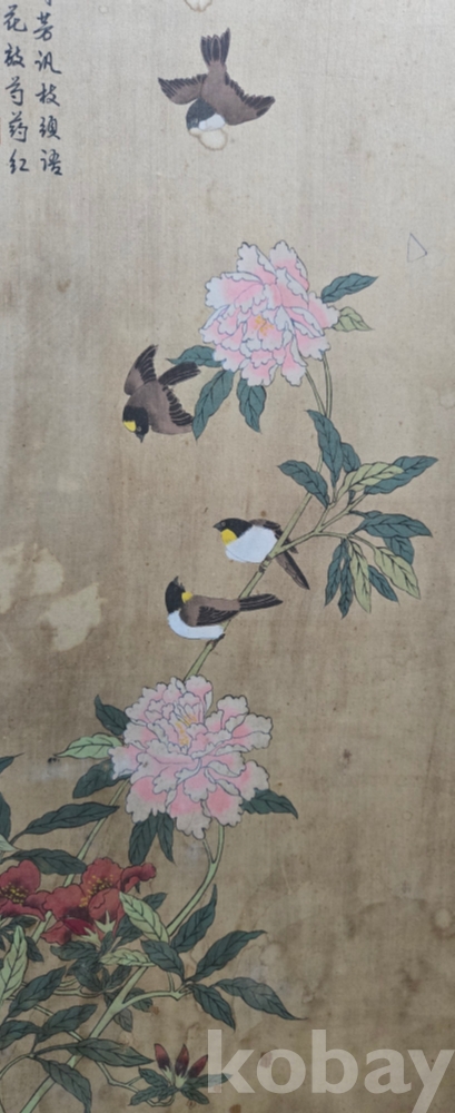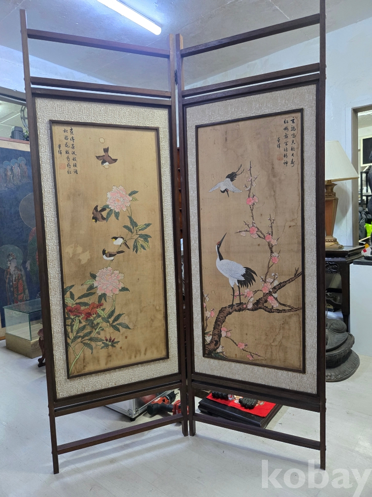 화풍과 재질감등으로 볼때 왜정연간 회화작품으로 추정하는 화조도 2폭 가리개입니다.